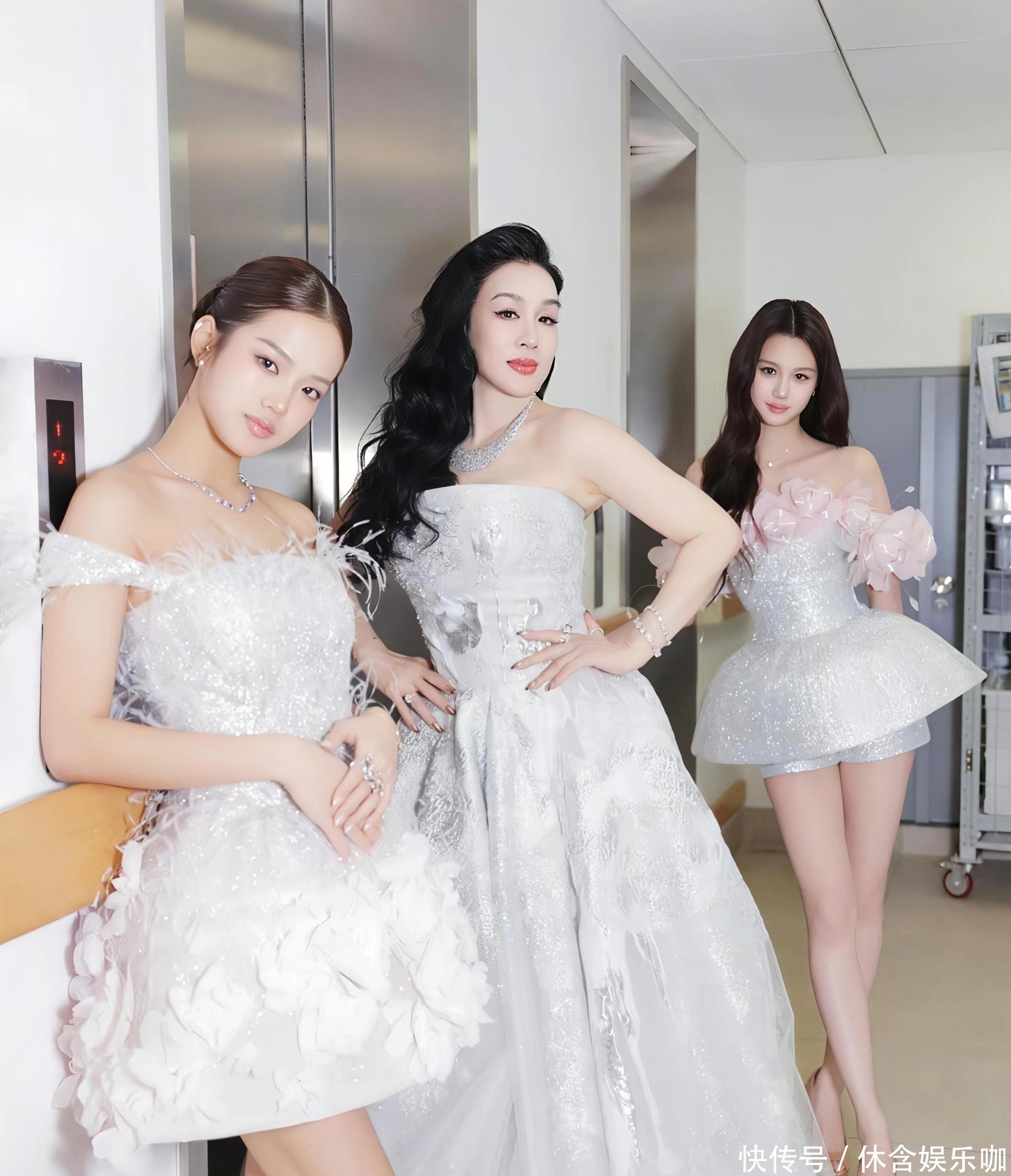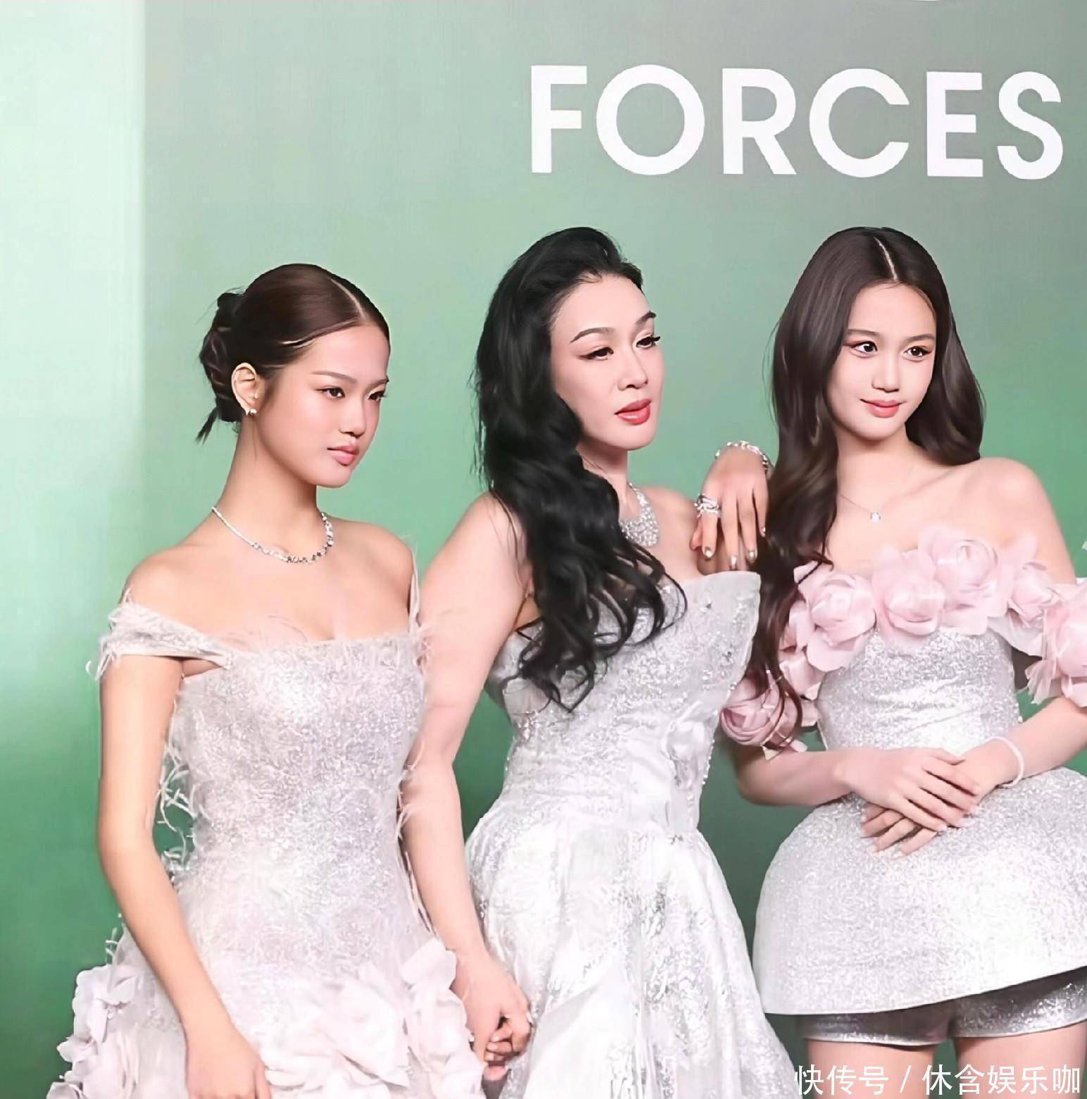 两个女儿第一次出席活动,就展现出了自信从容的气质,而且非常有镜头感。特别是在妈妈身边,就像两个美丽大方的小公主一样,甜美爆棚。母女三人的高颜值同框,再度引发了网友们对“共用一张脸”的热议。